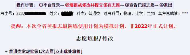 请考生注意:考生修改操作后请及时点击“保存志愿预填表”保存预选志愿,以免修改内容丢失。
