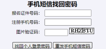考生若忘记登录密码或手机短信密码,均可在此页面点击“找回密码”通过手机号码自行找回,“手机短信找回密码”操作页面如下图: