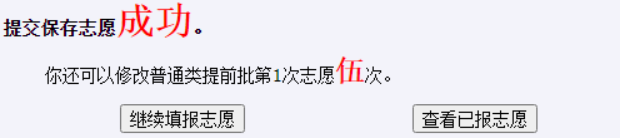 输入个人登录密码后点击“确定”,系统提示保存志愿操作成功,如下图: