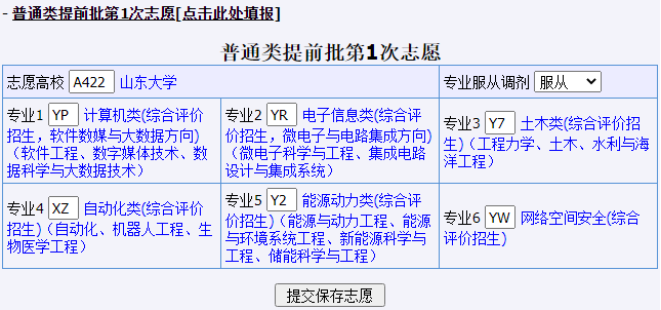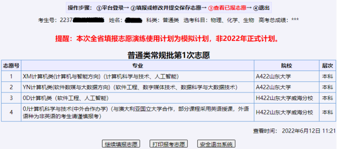 注意:填报志愿系统仅保留本次填报志愿信息。