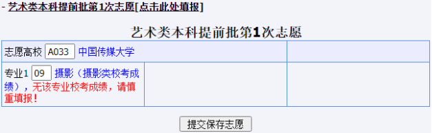 以艺术类考生7月5日填报本科批志愿为例,考生登录系统后,各志愿菜单显示如下图: