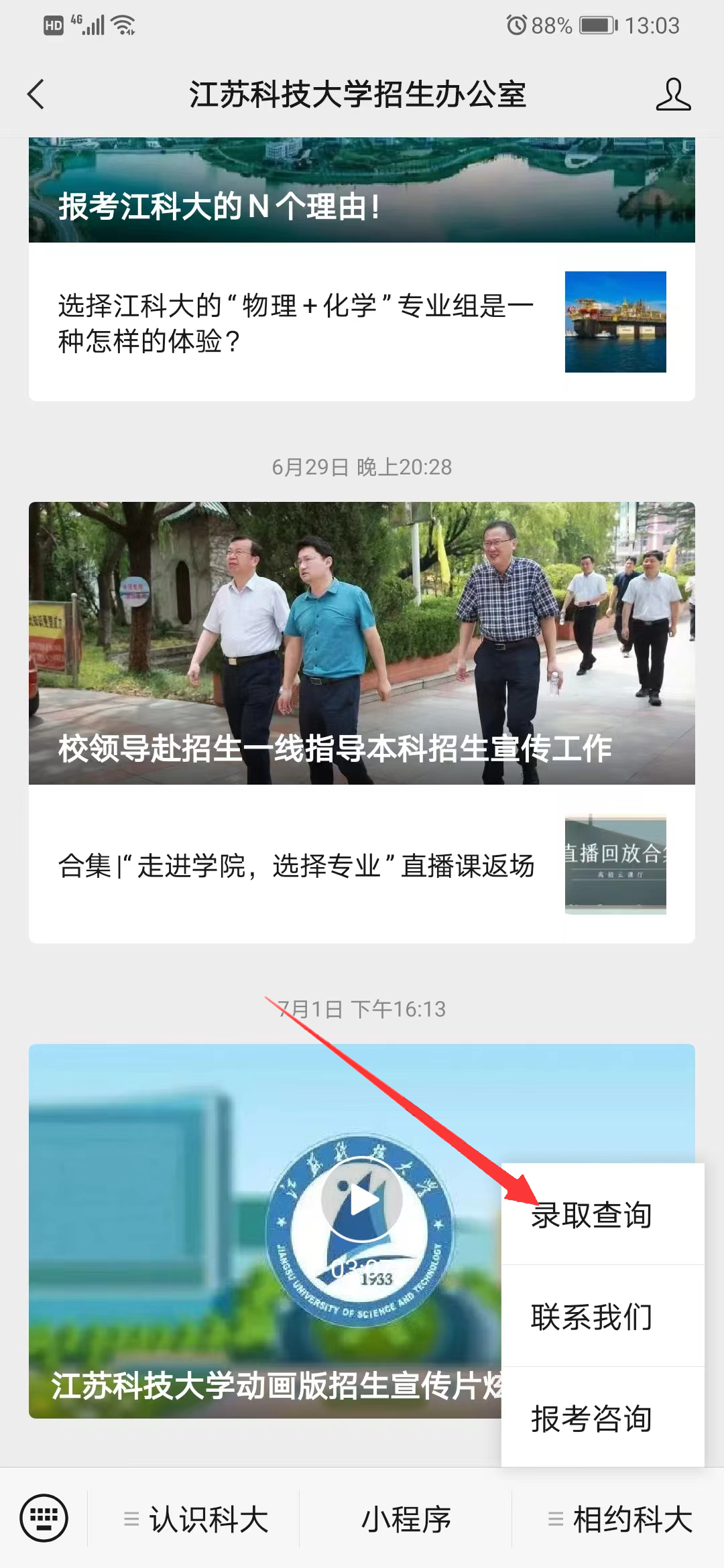 三、“江苏科技大学招生办公室”微信公众号