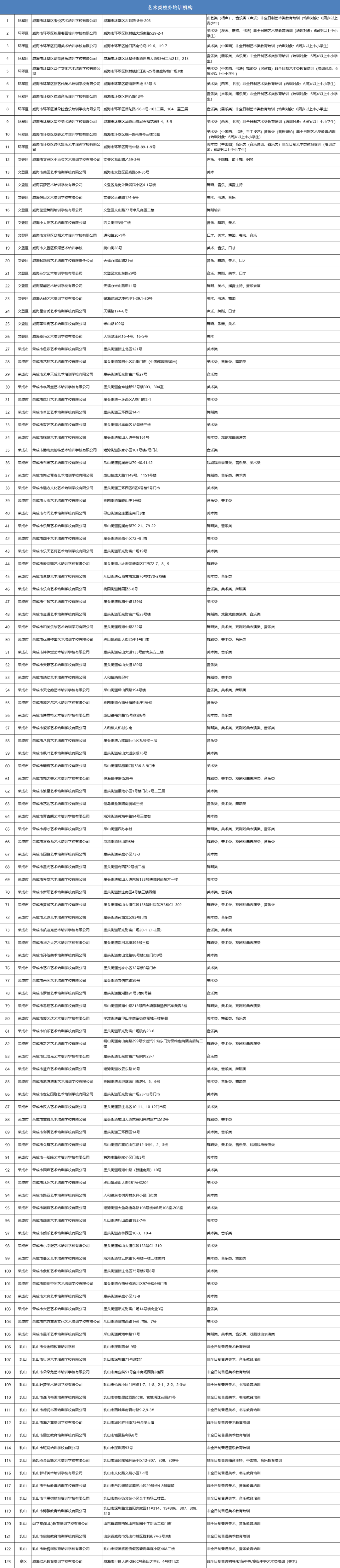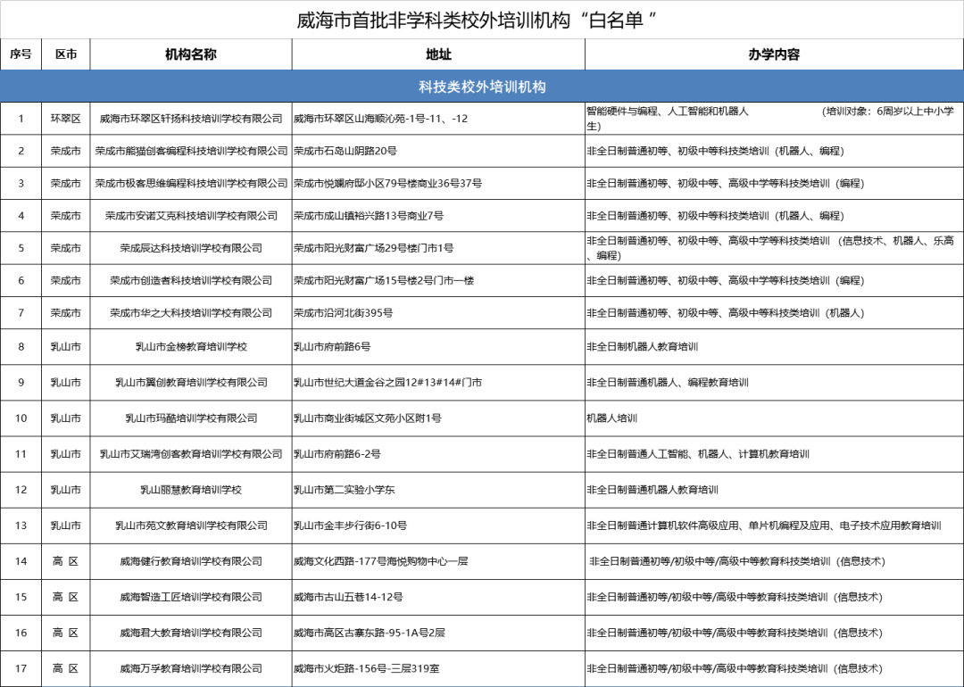 威海市首批非学科类校外培训机构“白名单 ”