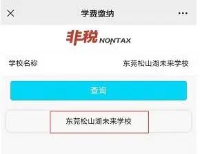 (2)输入学校名称“东莞松山湖未来学校”后,点“查询”,再点“出现的学校名称”进入下一步。