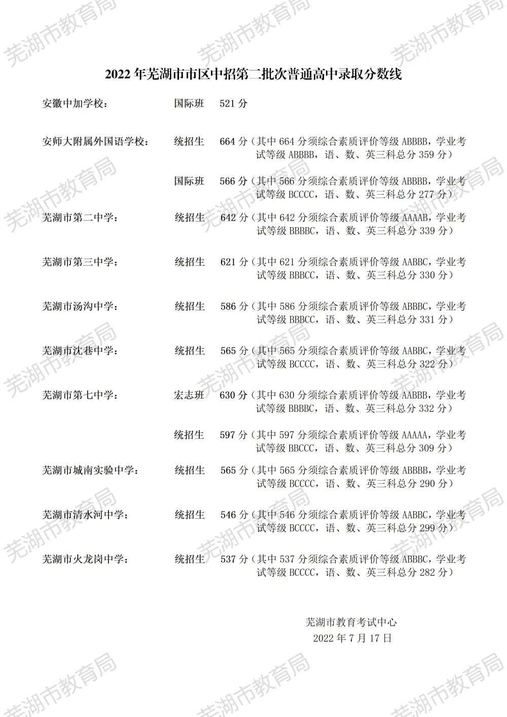 二、2022年芜湖市区中招各批次录取结果查询时间