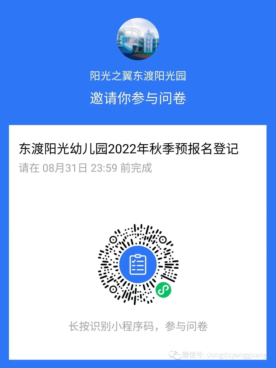 1.扫描小程序二维码一一填写报名资料一一选择厦门市湖里区东渡阳光幼儿园(默认)一一确定提交。