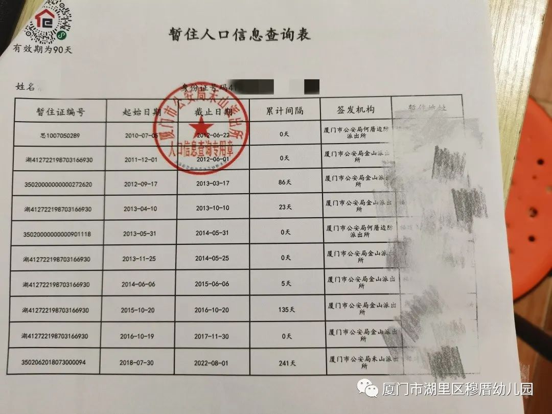 1、父(母)在湖里区暂住连续1年以上居住证明清单(2021年8月-2022年8月)