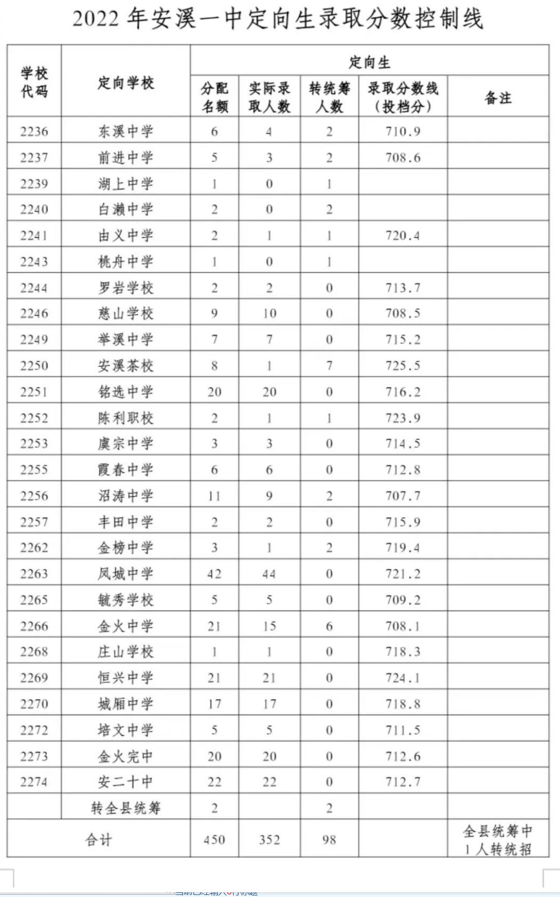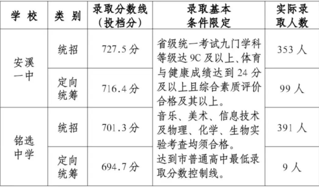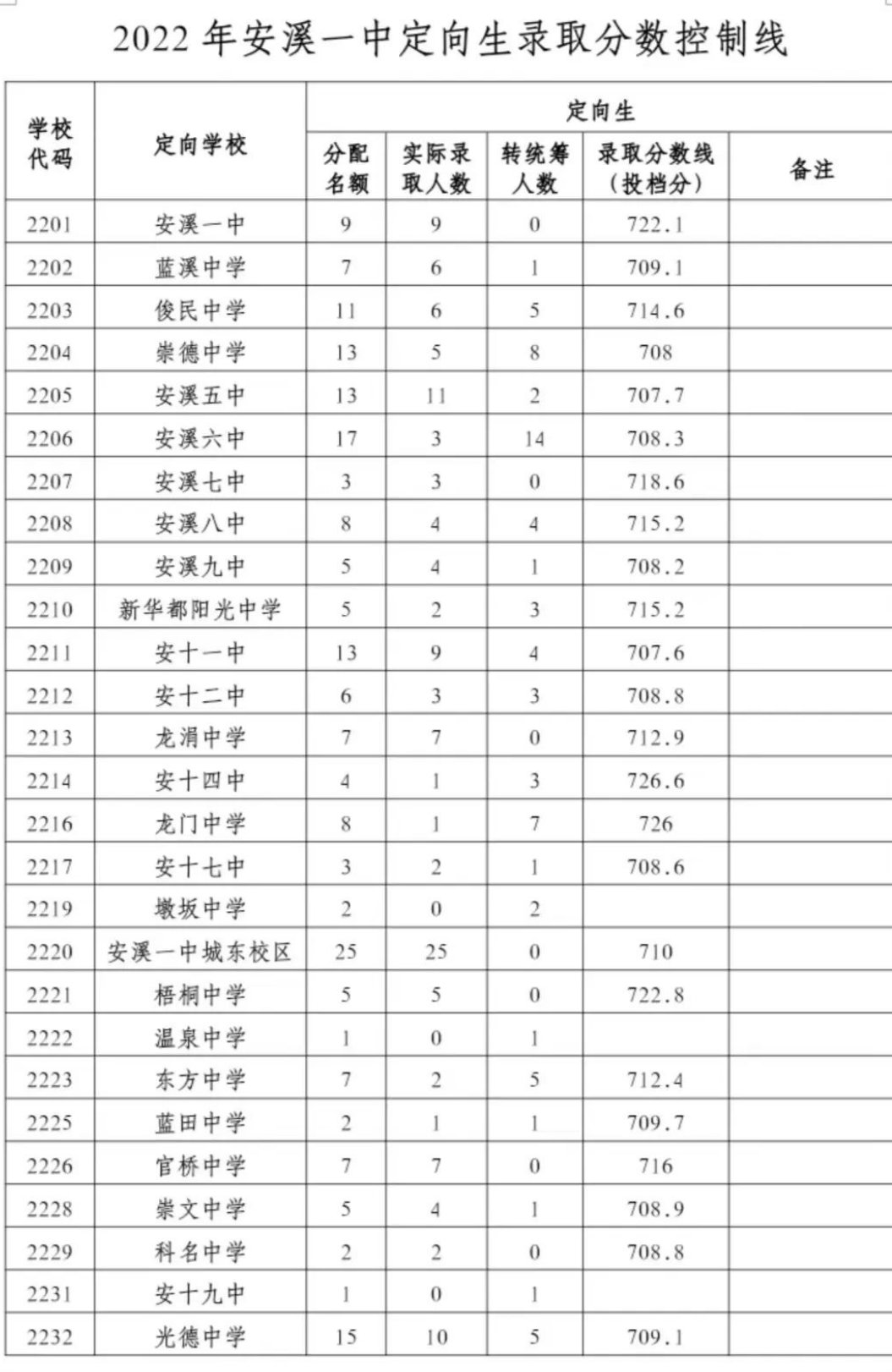 2、2022年安溪一中定向生录取分数控制线