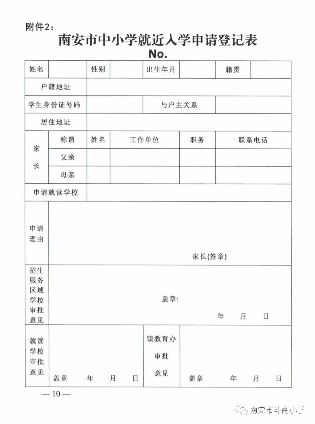 根据《南安市金淘镇人民政府关于做好2022年秋季小学招生工作的通知》文件要求,中心小学、斗南小学招收服务区外适龄儿童,需提供相关证明材料,需填写《南安市中小学就近入学申请登记表》报送镇教育办。