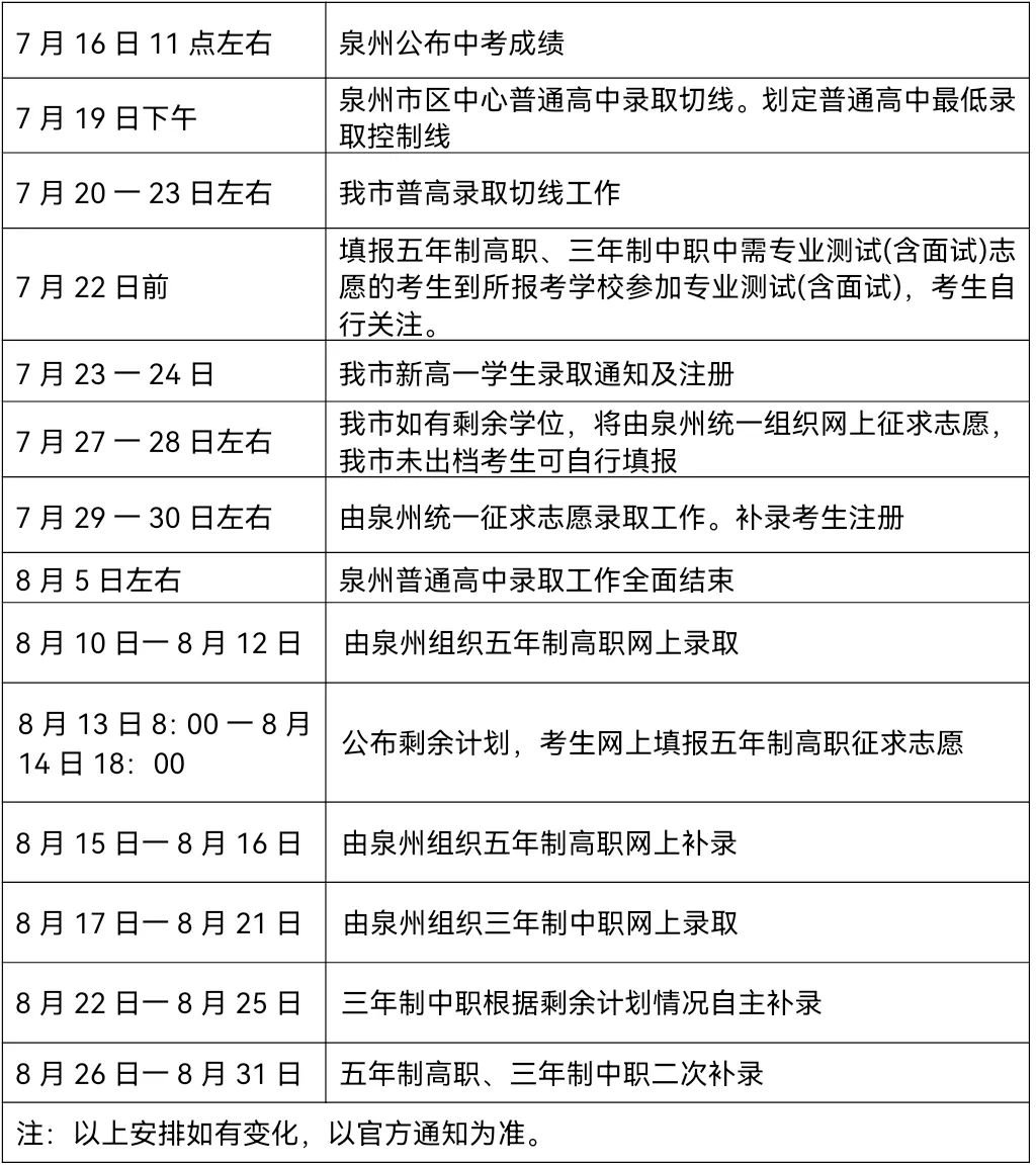 3.泉州市中心市区七所省一级达标高中录取。按照统招生、定向生批次依次录取。