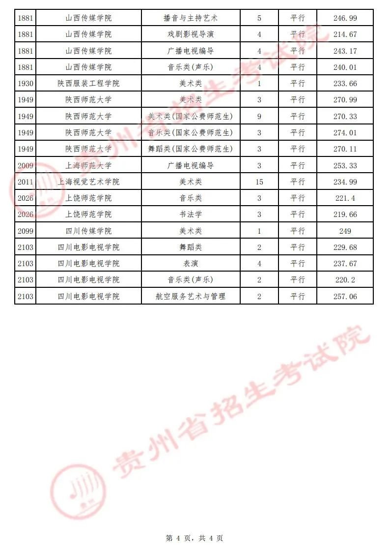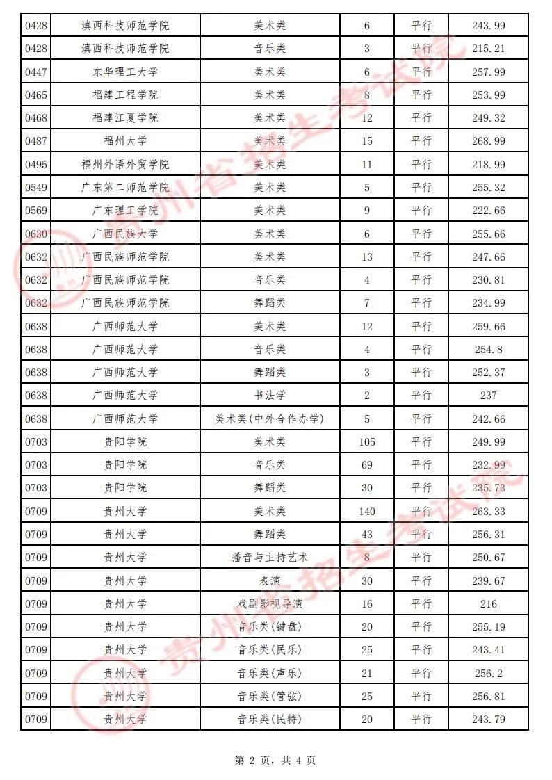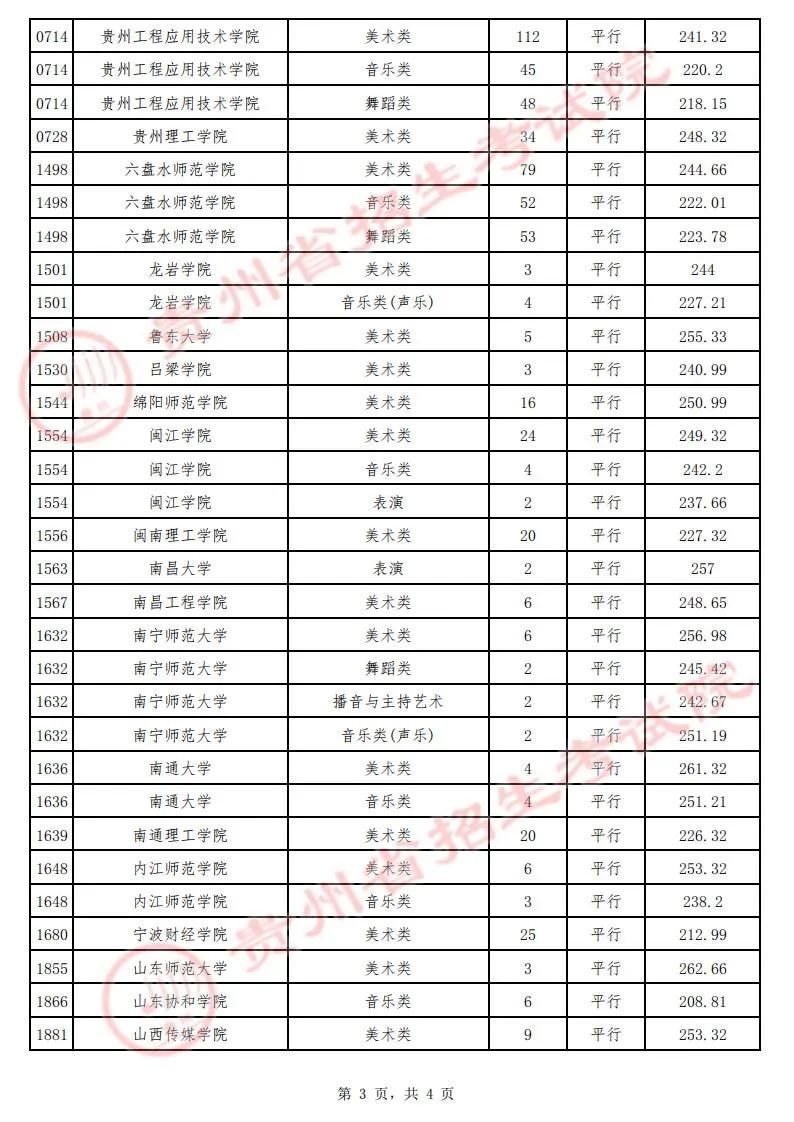 (三)艺术类平行志愿本科院校录取情况