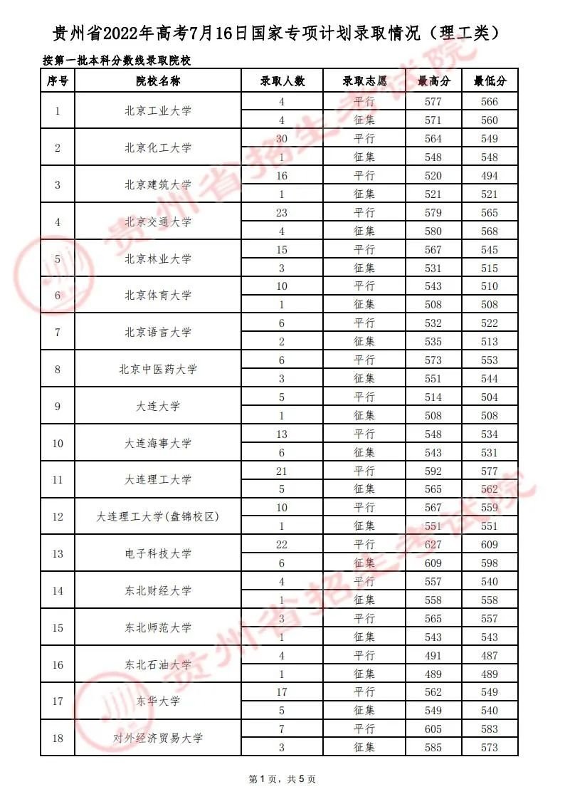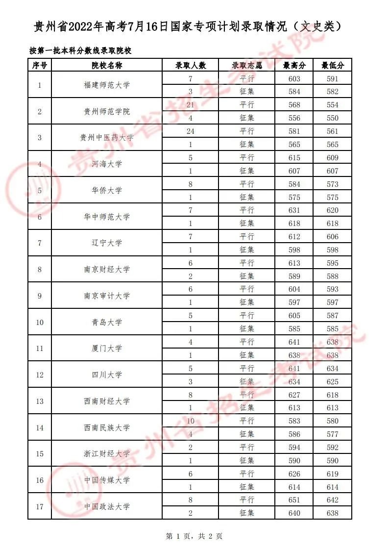 一、2022年7月16日贵州省高考录取情况
