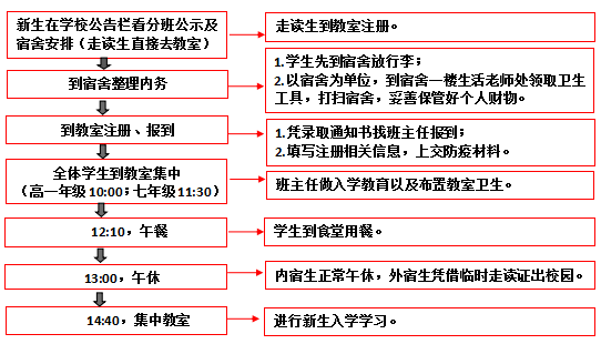 七年级、高一年级新生注册时间为8月28日上午8:10-10:30