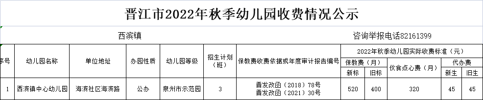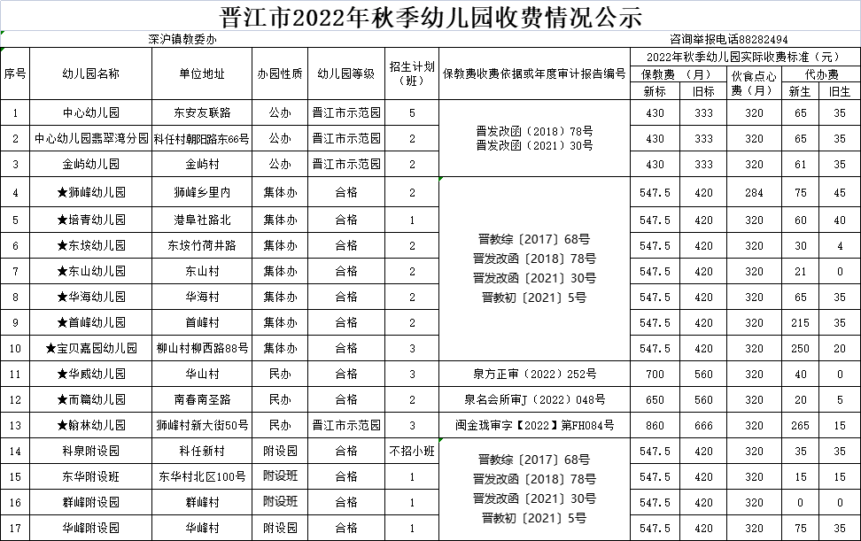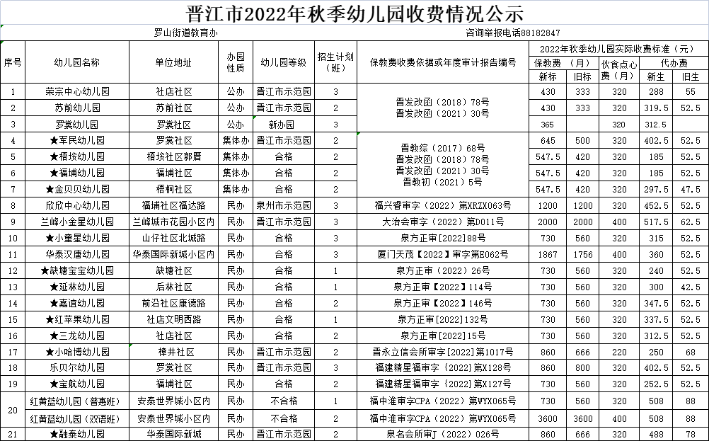 现将晋江市幼儿园2022年秋季收费标准进行公示,并就有关事项提示如下: