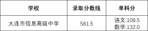 3.根据《关于大连市2022年初中毕业升学考试和中等学校招生工作的意见》(大招委〔2022〕6号)文件规定:普通高中录取时,如果总成绩相同,依据综合素质评价等级、语文、数学、外语单科成绩依次从高到低进行区分。分数线表格中“单科分”是指普通高中录取遇到总成绩相同考生时,以单科成绩区分的最低分。