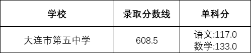 3.根据《关于大连市2022年初中毕业升学考试和中等学校招生工作的意见》(大招委〔2022〕6号)文件规定:普通高中录取时,如果总成绩相同,依据综合素质评价等级、语文、数学、外语单科成绩依次从高到低进行区分。分数线表格中“单科分”是指普通高中录取遇到总成绩相同考生时,以单科成绩区分的最低分。