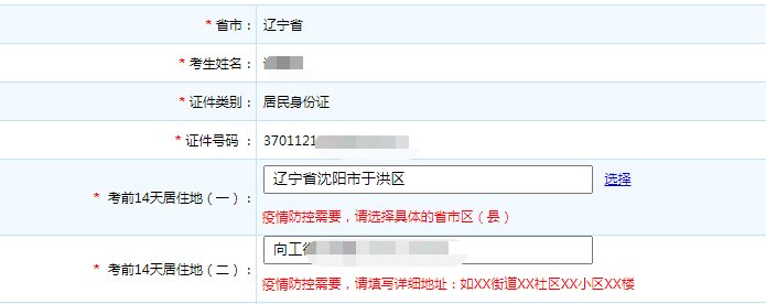 3.根据疫情防控需要,如“考前14天居住地”有变化,请重新选择并填写现有详细信息。