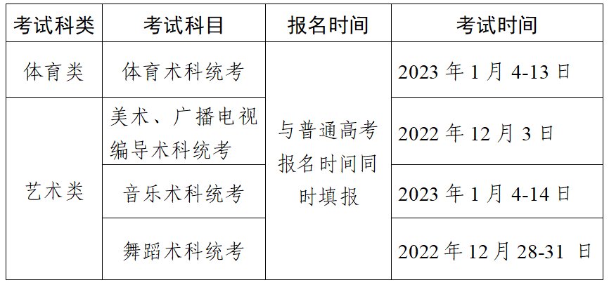 (二)参加了2023年1月广东省普通高中学业水平合格性考试语文、数学、英语3门科目考试。其中,艺术类、体育类(下称艺体类),还须参加广东省2023年普通高等学校招生艺体类相应术科统一考试。