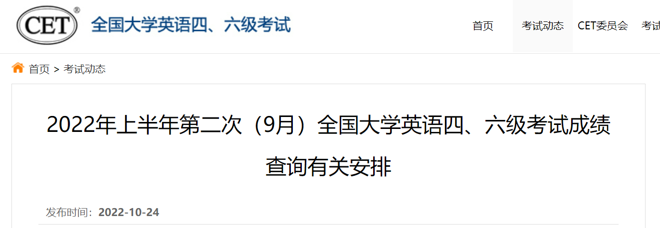 2022年上半年第二次(9月)全国大学英语四、六级考试成绩查询有关安排