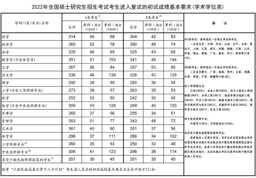 2022年3月11日下午,教育部发布了《2022年全国硕士研究生招生考试考生进入复试的初试成绩基本要求》(国家分数线)。明确各招生单位将根据《2022年全国硕士研究生招生工作管理规定》,在国家分数线的基础上,自主确定并公布本单位各专业考生进入复试的要求。
