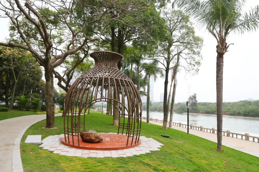 广场内还新建了两个景观亭和一个候鸟亭,为市民提供休憩场所。