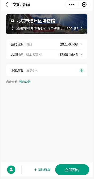 ➤北京市通州区博物馆预约入口:文旅绿码小程序