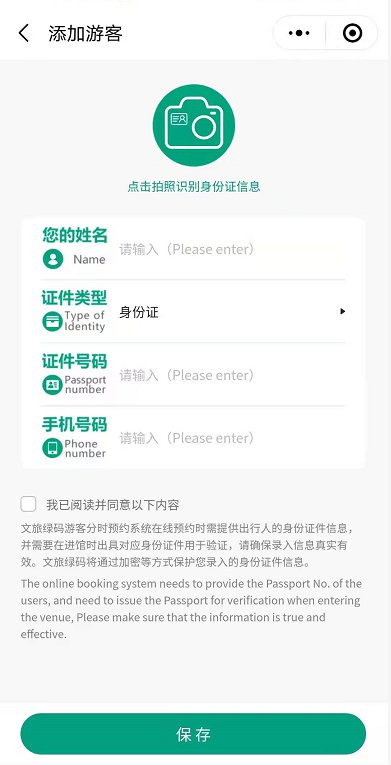 第四步,点击“添加游客”并按照提示完善参观人信息;何核对信息无误后点击“保存”后,点立即预约