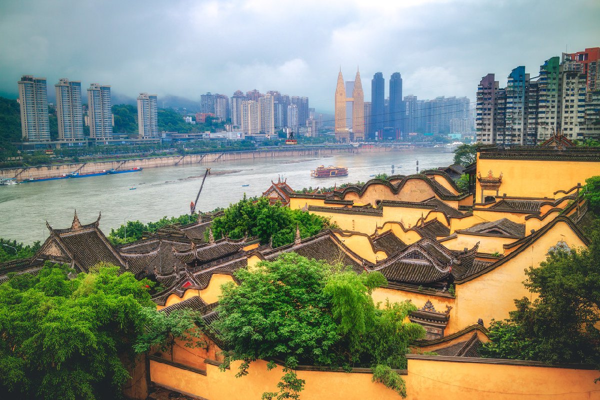 重庆湖广会馆占地面积1.84万平方米,系禹王宫、齐安公所、广东公所等清代古建筑群及仿古建筑的统称,坐落在高差近40米的坡地上,建筑布局因地制宜,分层筑台、层层跌落,与自然地形充分结合,具有浓厚的山地特色。会馆建筑大多沿袭明清时期四合院布局,采用不同的屋顶结构,如悬山、卷棚、歇山等形式,既承袭广东、广西、湖南、湖北以及江南一带的典型建筑风格,又融汇重庆传统建筑特色,因时间不同,三大会馆建筑风格又各有差异。