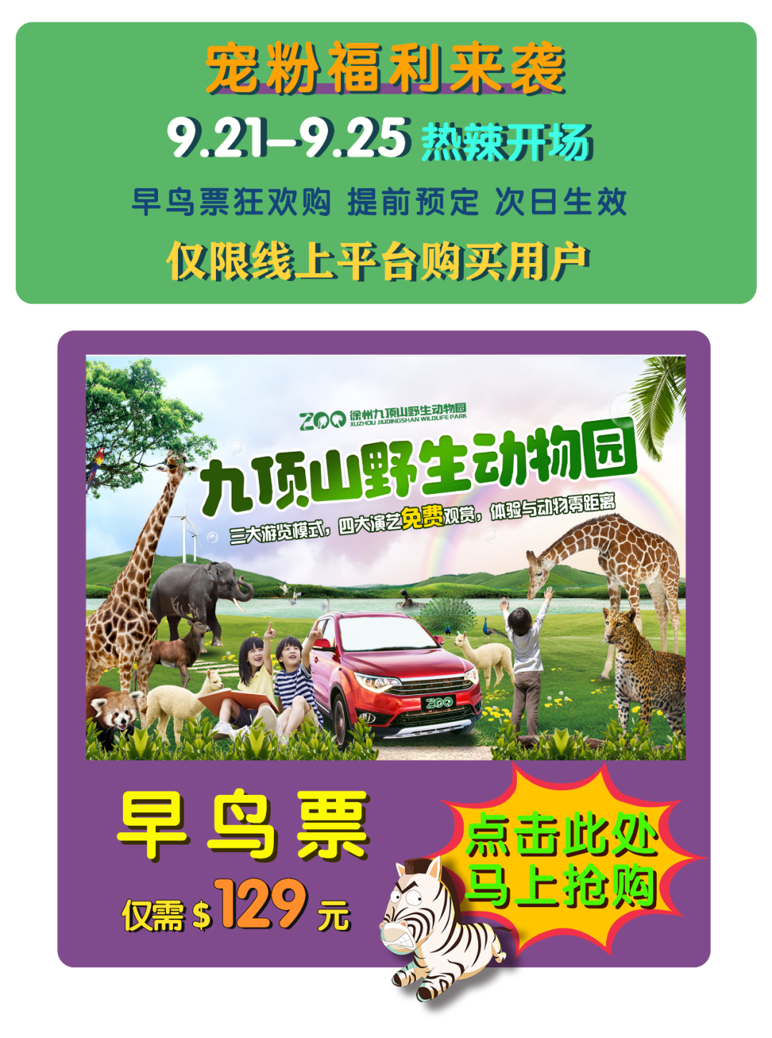 2、早鸟票适用于1成人或1.5米以上儿童,一张票可另外携带一名1.2米(含)以下儿童;