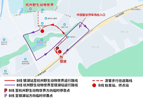 此站距离杭州野生动物世界最近,从银湖站C出口出来,步行至望湖路口临时停靠点乘坐地铁接驳巴士可直达景区