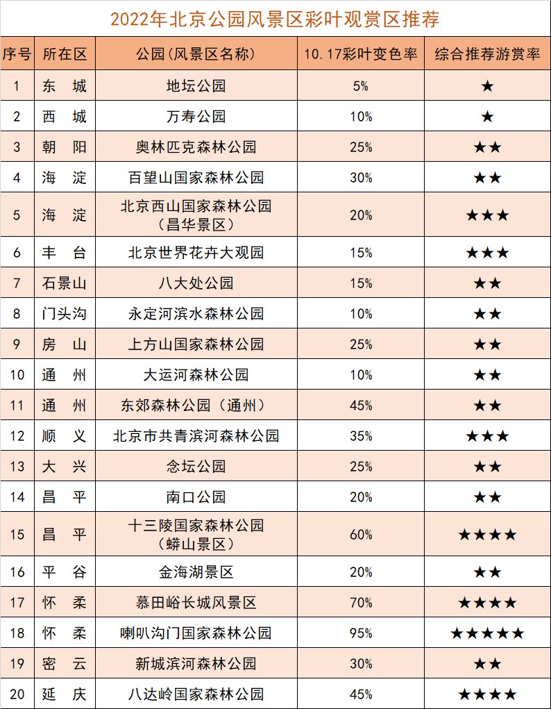 目前,北京已逐渐进入红叶季。今年全市公园风景区在16个区共推出20个京城赏叶好去处,大家可持续关注各赏叶片区红叶变色情况,规划自己的赏红出行路线。