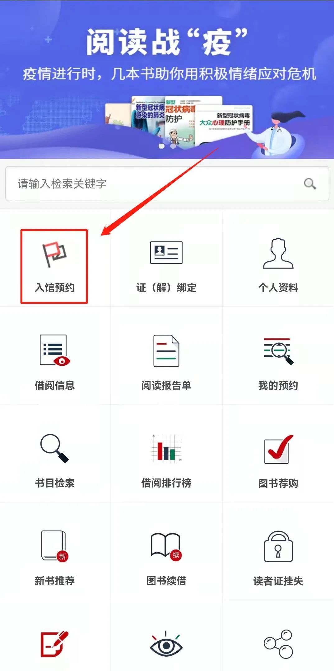 在呼和浩特市图书馆微信公众号菜单栏中点击“微服务大厅”,然后点击“入馆预约”后按提示操作即可。