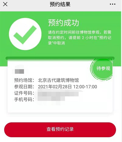 注意:北京古代建筑博物馆为非免费开放博物馆,网上预约成功后还需现场购票