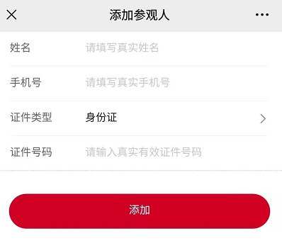 3、添加参观人信息,实名制信息包括手机号、身份证件号