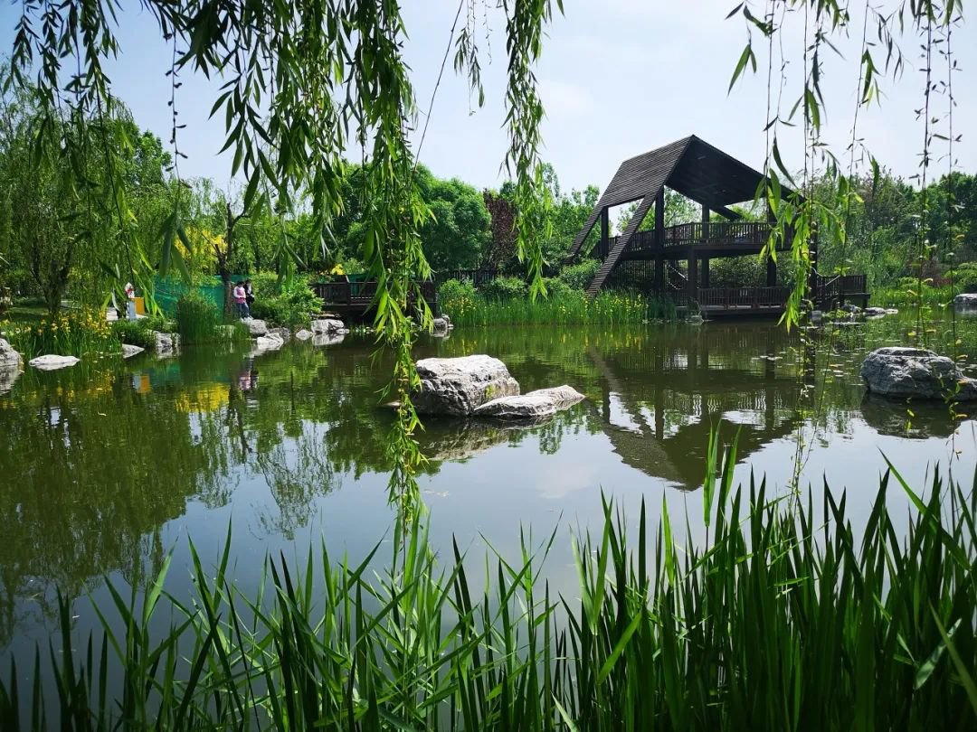设计精巧的园林造景、五彩缤纷的花草树木、种类齐全的健身设施……富民公园依水建景,生态大绿和园林小景相结合。近7000平方米生态观景水系,为市民提供近距离观水、亲水平台。“五步一小景,十步一大景”,生态水系萦绕全园并连接景观节点。