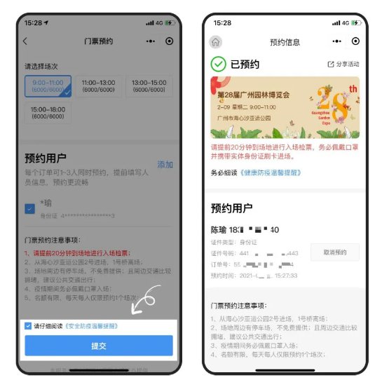 第一步:实名登录“穗康”小程序,点击首页活动banner进入预约页面,选择场次、时间,按要求添加预约用户、填写预约用户信息。每个订单可1~3人同时预约。