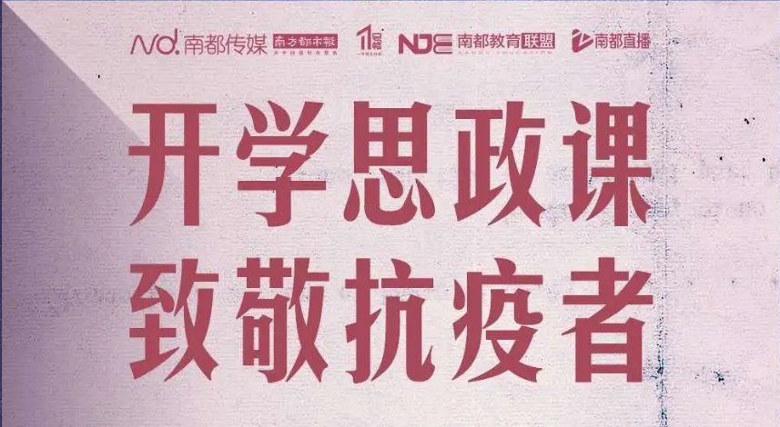 又是一年开学日。为学习战疫英雄精神,弘扬爱国主义情怀,9月1日14:30,中共广州市天河区委宣传部、广州市天河区教育局联合南方都 市报在天河区中小学中开展“开学思政课 致敬抗疫者”班会课活动。