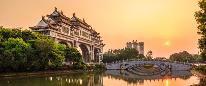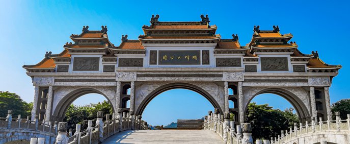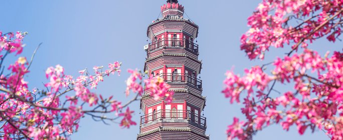 顺德“新十景”之一的顺峰山公园,公园总面积8209亩,依据“两山两水”(太平山、神步山;桂畔湖、青云湖)得天独厚的自然环境,突出“山色水韵”的建设主题,同时充分融入了本地深厚的人文历史底蕴以及岭南特色民俗民风,将古塔、寺庙等历史古迹和古典园林风格的楼阁建筑,共同形成了顺峰山自然与人文的景观格局。