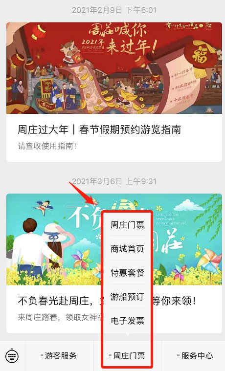 1、进入周庄怎么玩公众号,选择“周庄门票”;