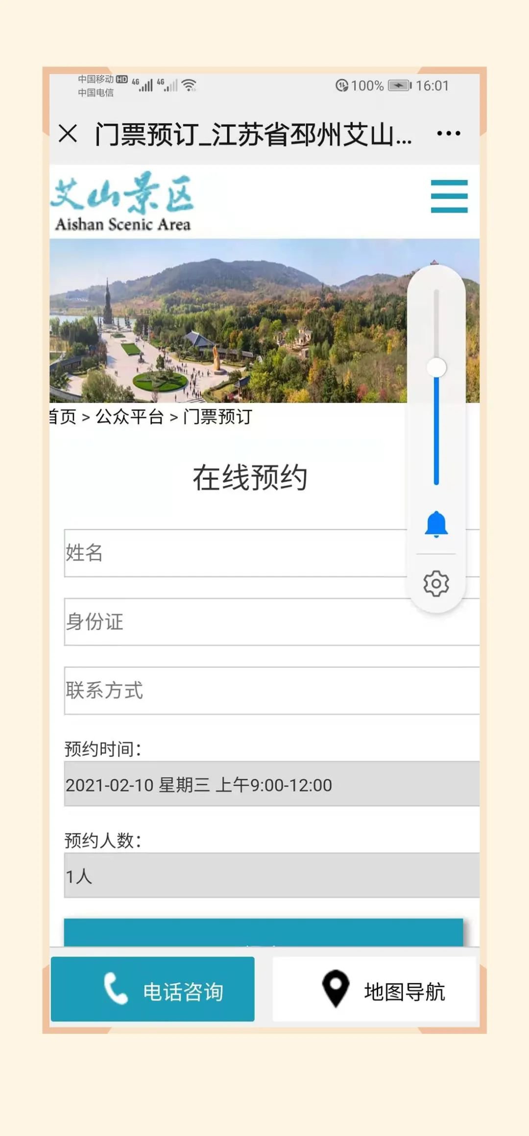 3、景区电话预约购票