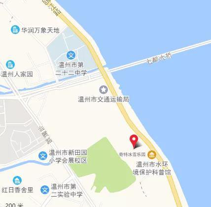 建议路线3:温州绕城高速—温州(七都)出口—七都大道—七都大桥—瓯江路—奇特冰雪乐园。