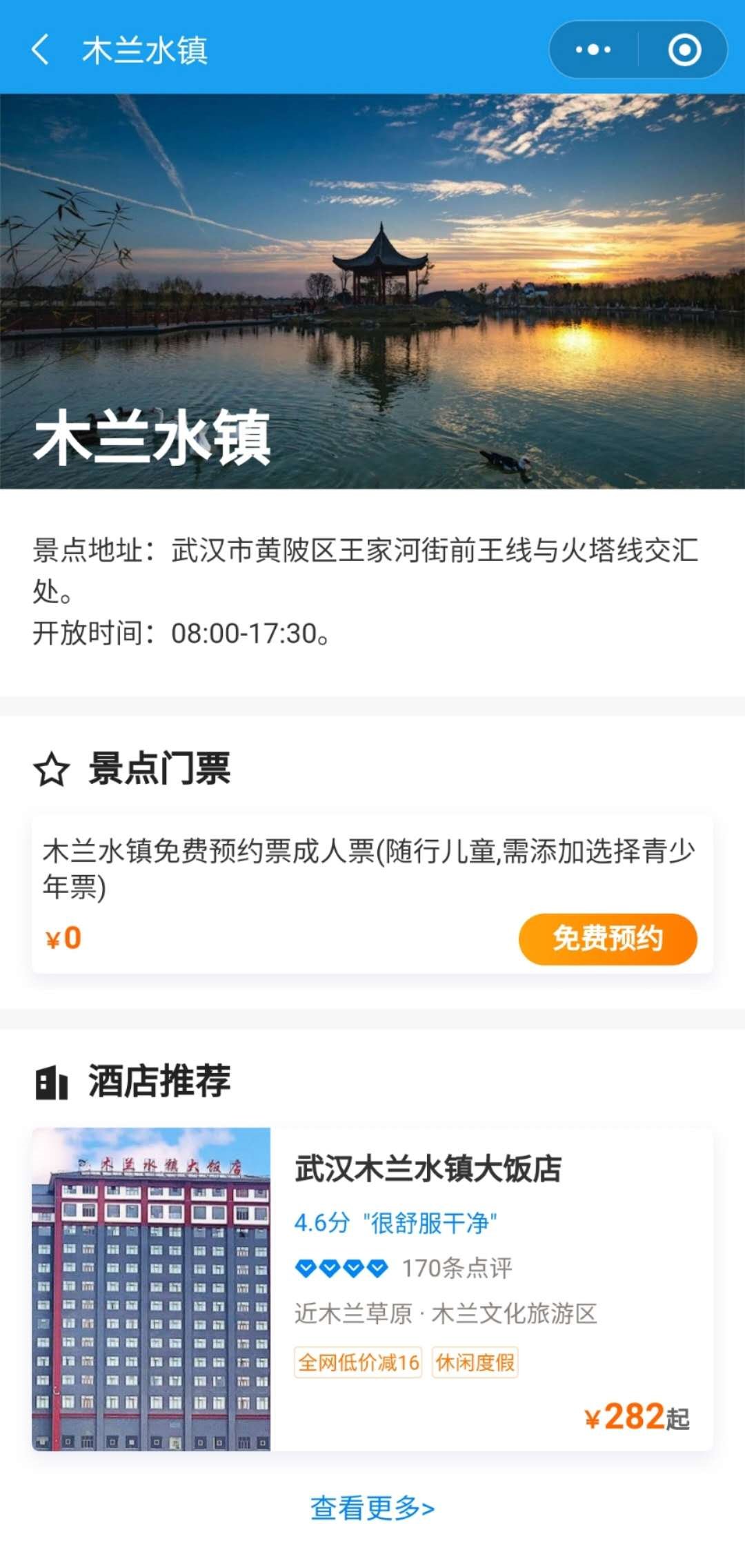 3、进入武汉页面,选择你想参观的景区——武汉木兰水镇,选择日期并预约。