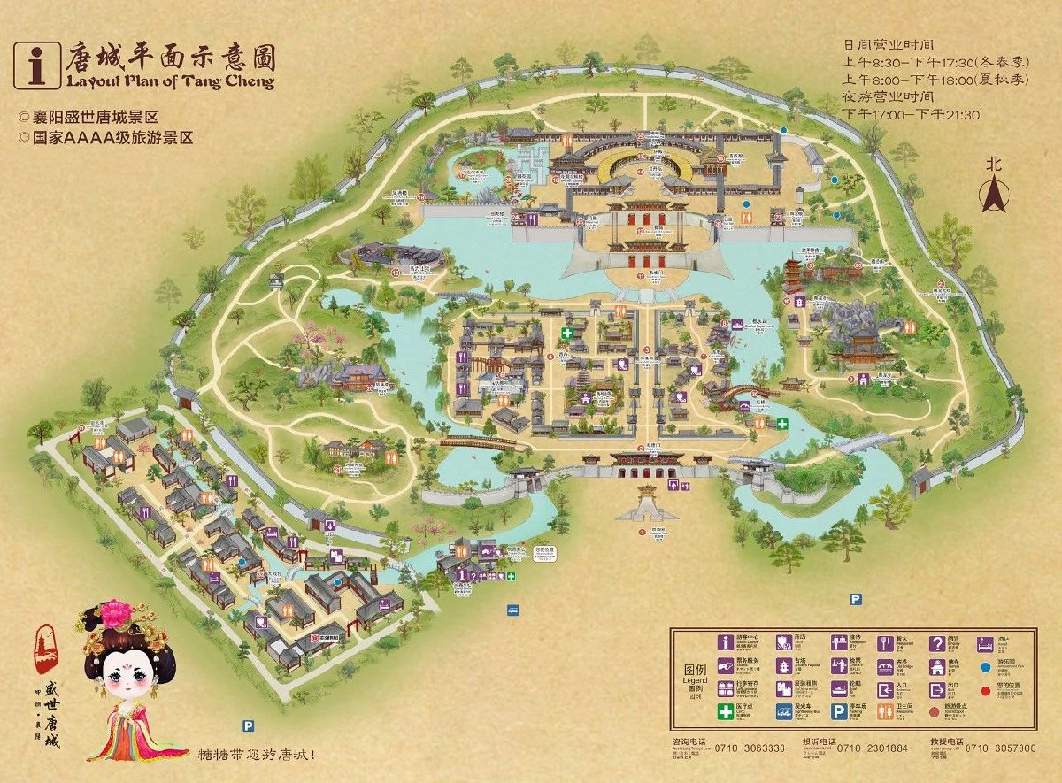 路线二:襄阳唐城中轴线两边分别是东市和西市,其建筑道路布置再现了唐朝时期市井文化的繁华景象,不管是日场还是夜场,这里都有各种有意思的表演,例如舞狮、猴戏等等,这些定能为您的唐城之行增添一抹亮色。