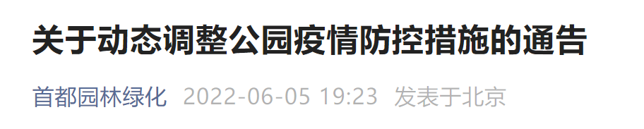 6月6日起北京市公园调整疫情防控措施