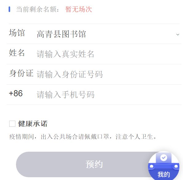 关注“高青县图书馆”微信公众号“读者指南”栏目的“预约进馆”功能预约