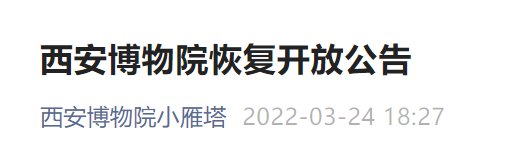 西安博物院小雁塔于2022年3月25日起恢复开放,游客需出示西安市“一码通”(绿码)和通信大数据行程卡(绿色),经测量体温正常后,从入口闸机处刷身份证入园。