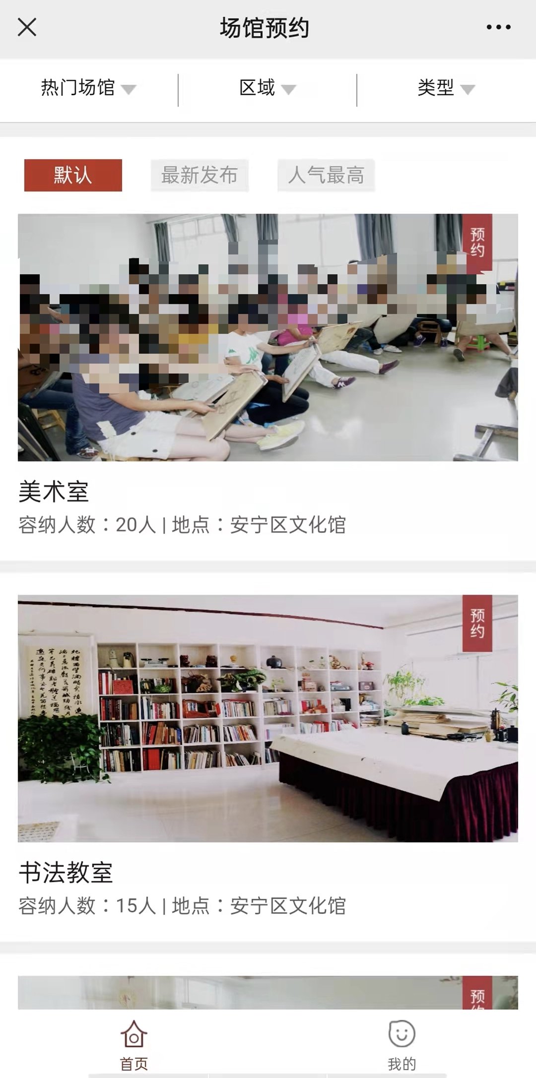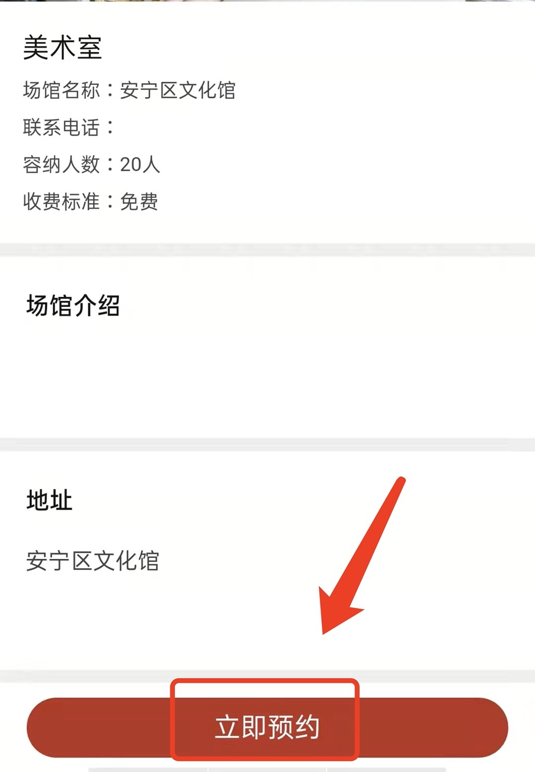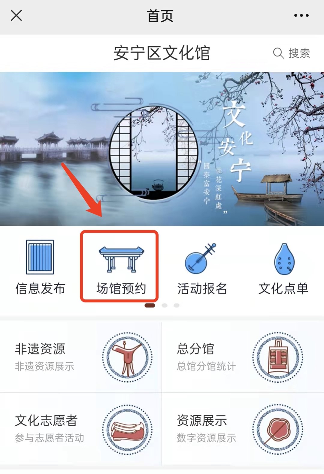 1、进入安宁区文化馆预约平台,点击“场馆预约”;