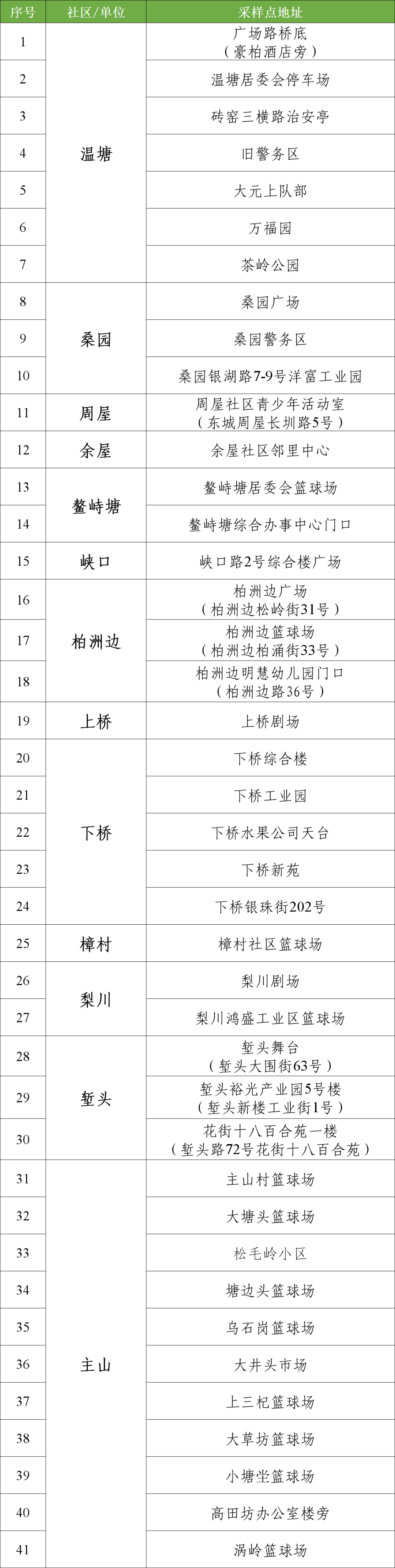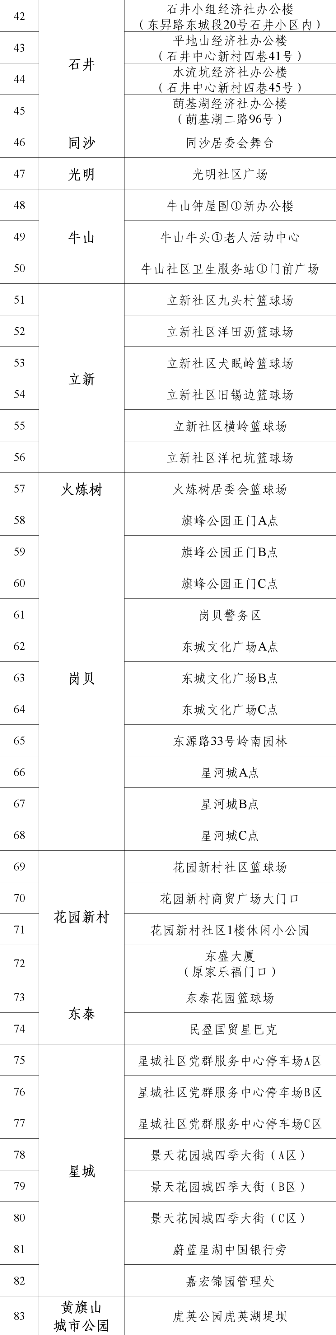 东城街道区域核酸检测采样点