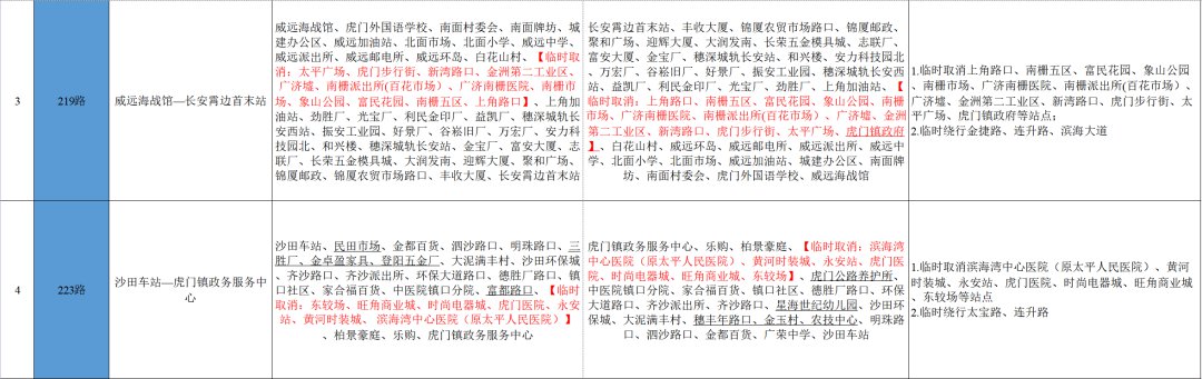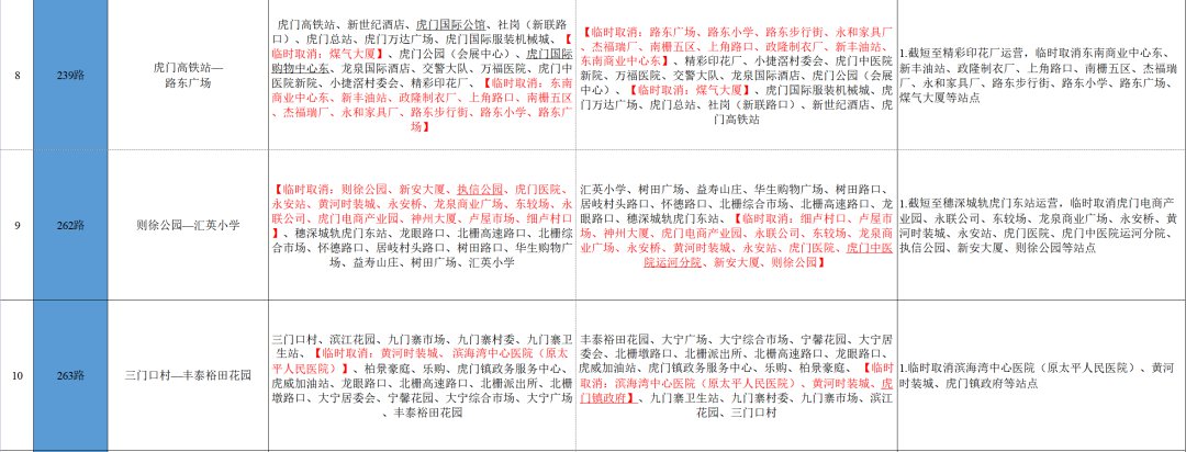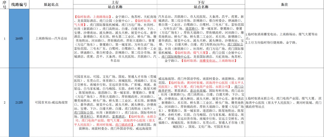 为配合疫情相关管控措施,滨海湾公交公司临时调整205路、212路、219路、223路、226路、229路、238路、239路、262路、263路、266路、267路、268路、莞241路等14条线路;临时停运235路、236路、237路、260路、261路、265路等6条线路。