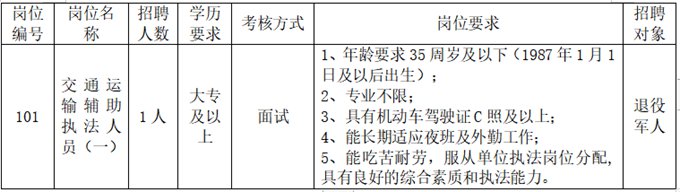 为了更好开展对栖霞区内交通运输的监管工作,经研究,南京市栖霞区交通运输局计划面向社会为下属的南京市栖霞区交通运输综合行政执法大队招聘辅助执法人员,因前期公开招聘有个别岗位未能按要求招录到人员,现面向社会补充招聘1人。现将有关事项公告如下: